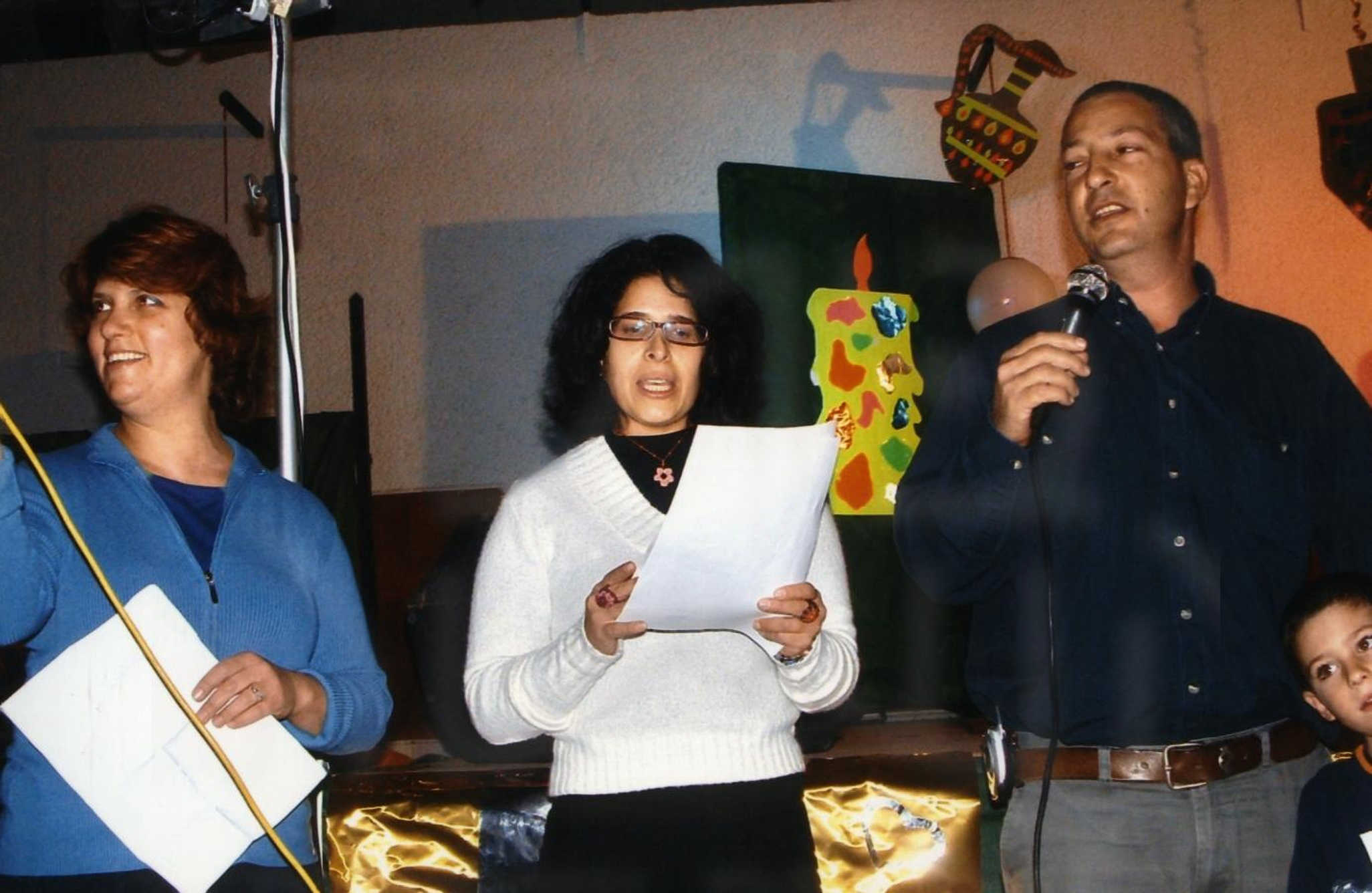 מסיבות חנוכה בחדר האכל- שרים ארז שטיין סמדר המאירי והדס גפני-2004
