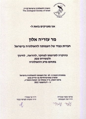 חברות כבוד בעמותה לזאולוגיה 2012